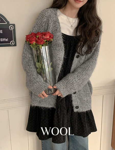 이플랑 ルーズフィット 도톰 헤어리 Vネック ウール カーディガン 85354