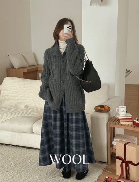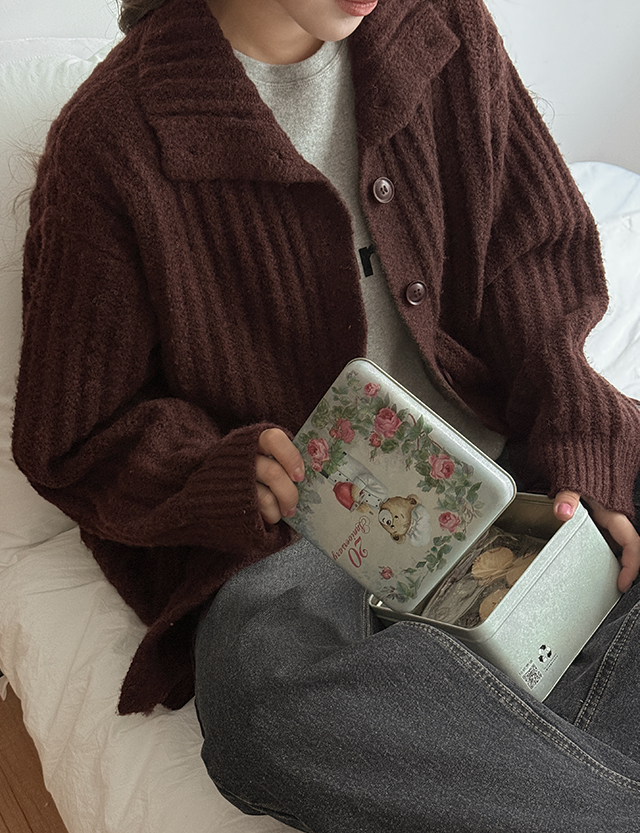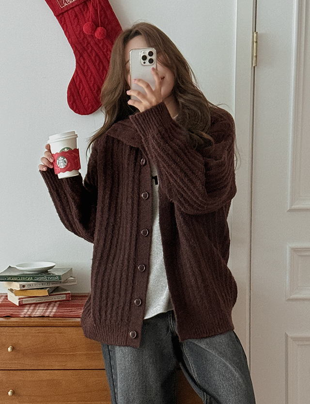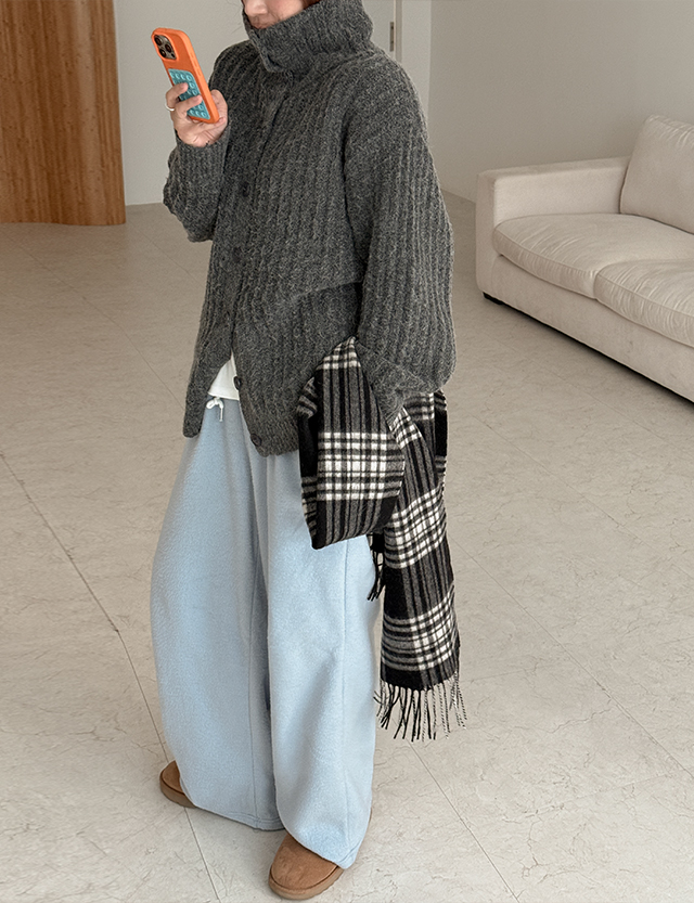 [남녀공용] 베리니 ルーズフィット ハイネック リブ編み ウール ニット カーディガン 85251