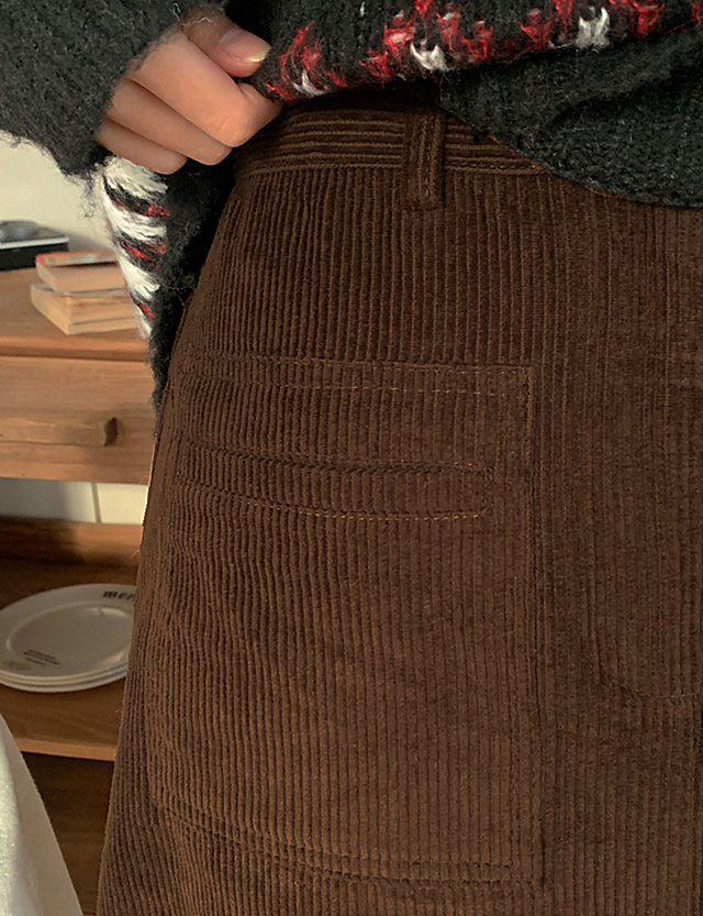 모네일 뒷밴딩 코듀로이 포켓 ロング スカート 85358