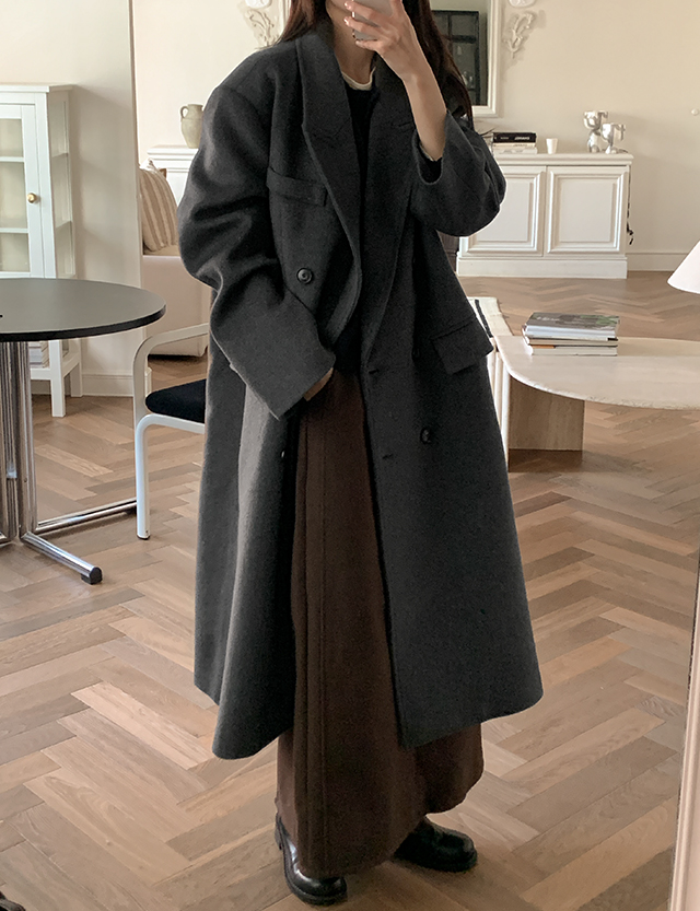 커빈 ルーズフィット ダブル ウール ロング コート 85412