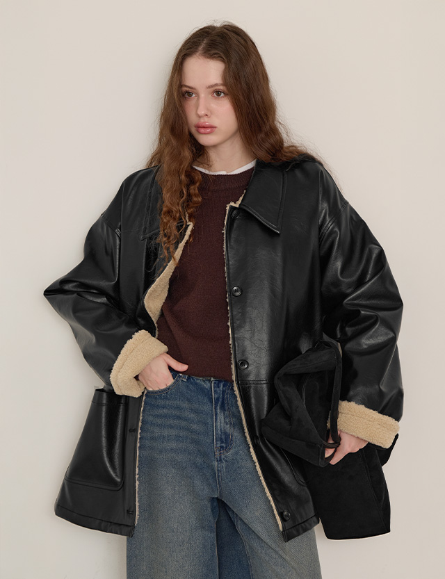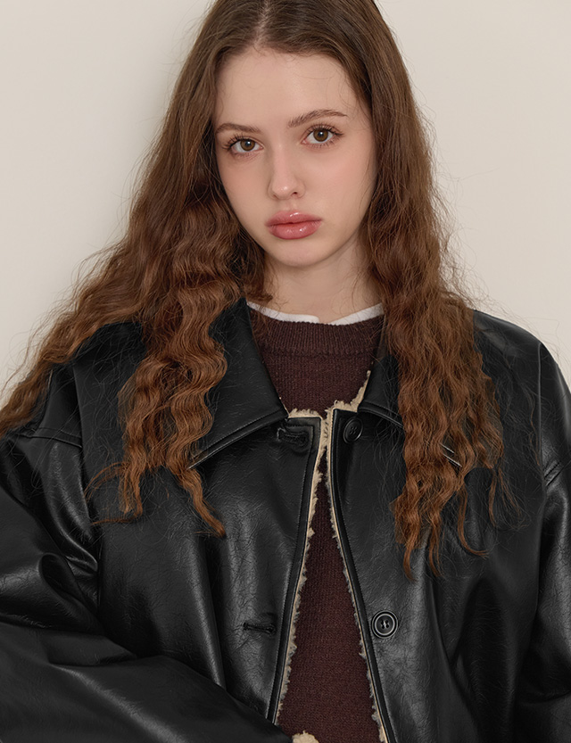 리스본 레더 キルティング ルーズフィット ハーフ ジャケット 85318