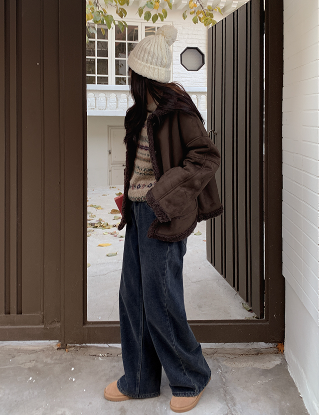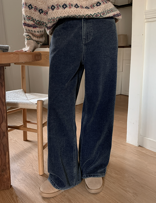 베르벳 뒷밴딩 ワイド ベルベット 起毛 デニム パンツ 85284