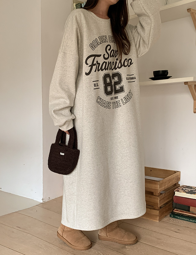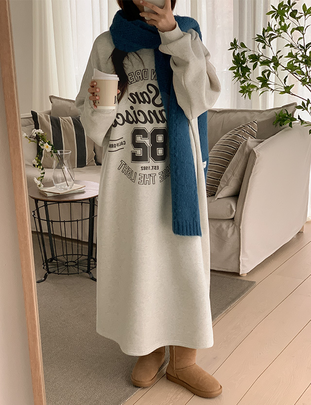 이스트 ルーズフィット プリンティング 起毛 ロング ワンピース 85392