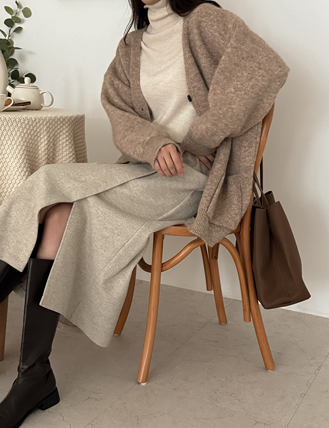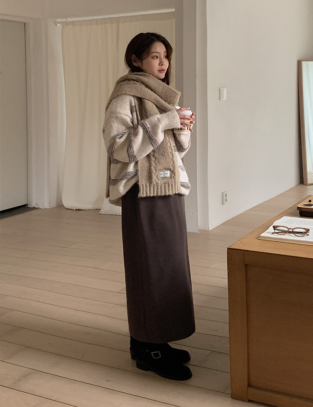 젤리 スパン 모직라이크 ゴム ロング スカート 85390