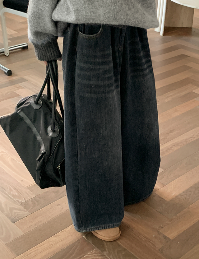 루빈티 밍크기모 ワイド デニム ゴム パンツ 85415