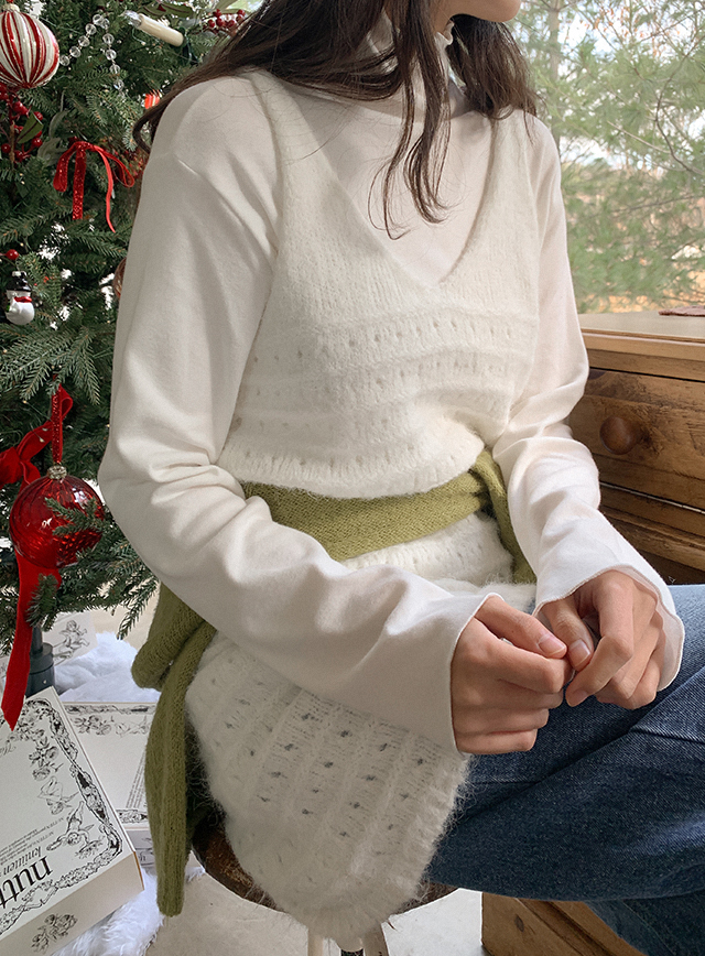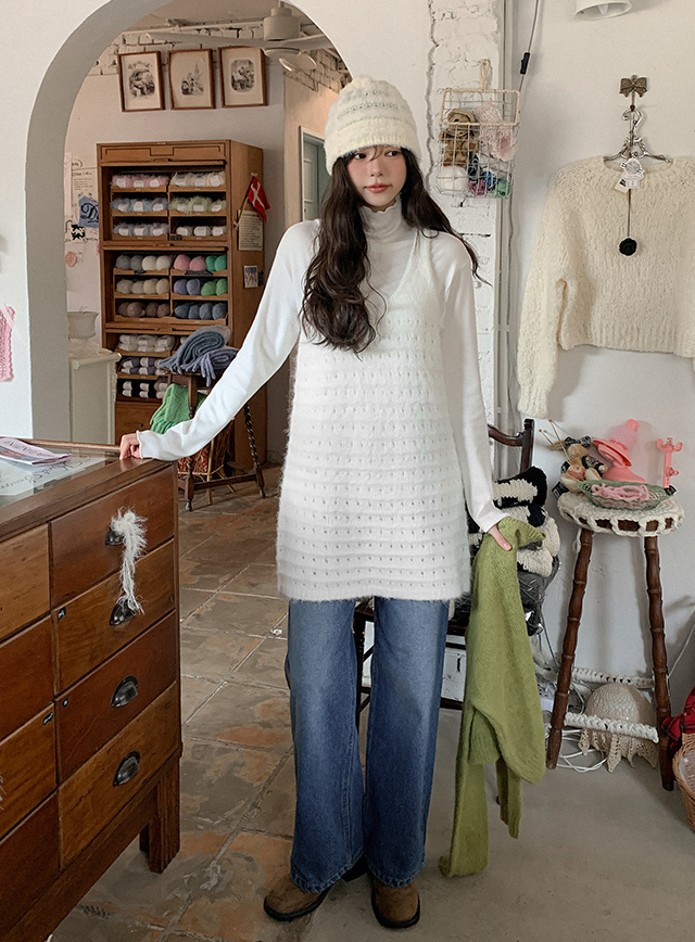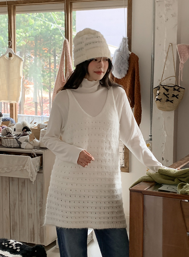 제닐 パンチング レイヤード ウール ニット ワンピース 85447