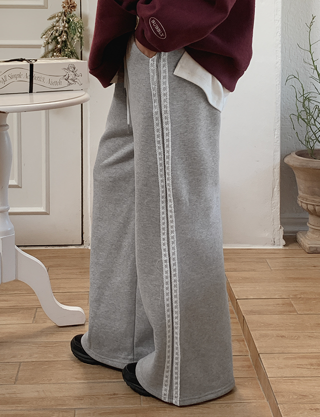멜캉 ゴム レイス 起毛 ワイド パンツ 85479