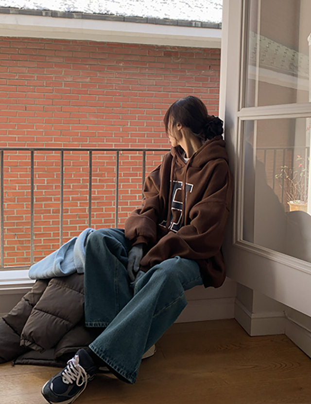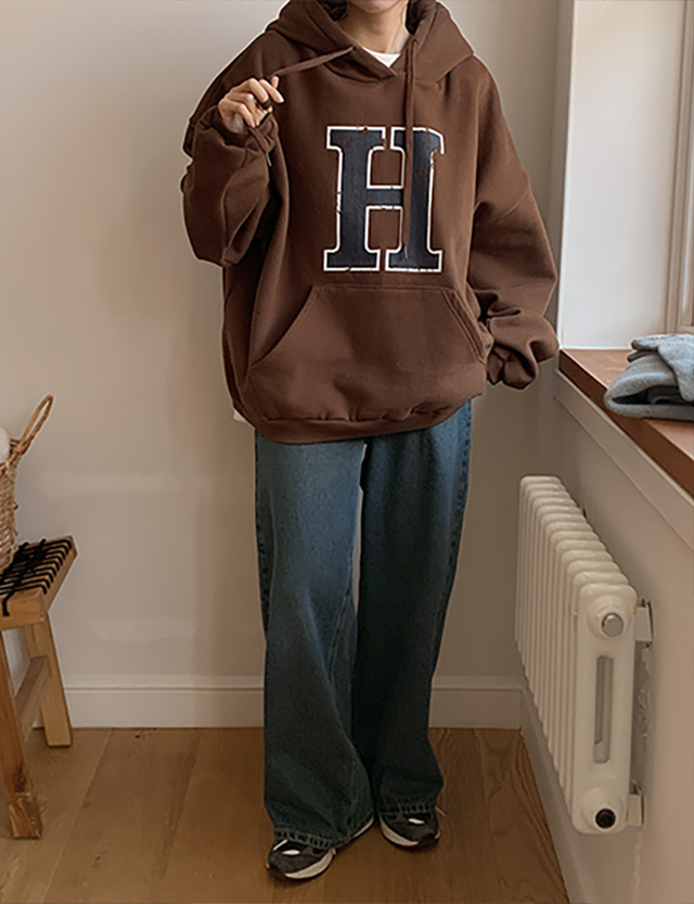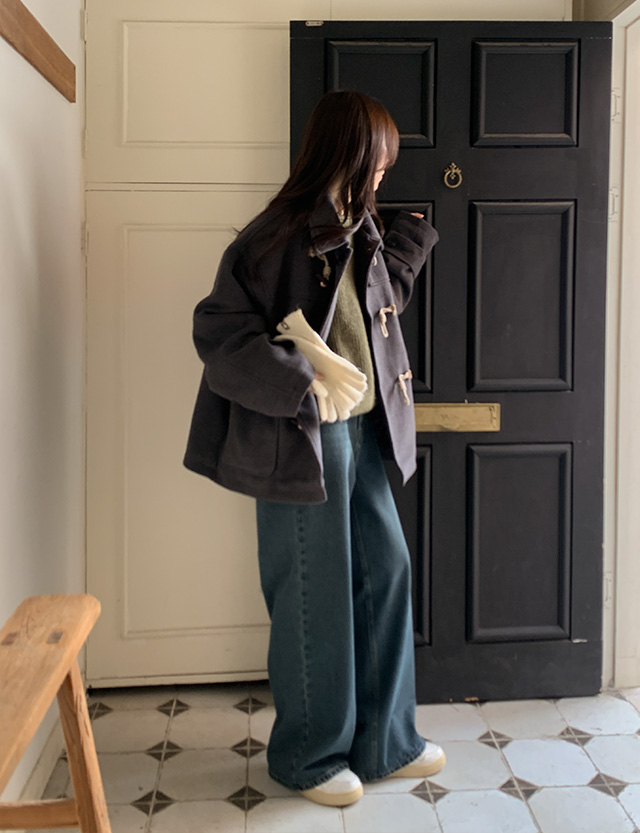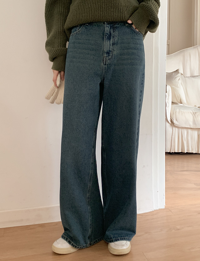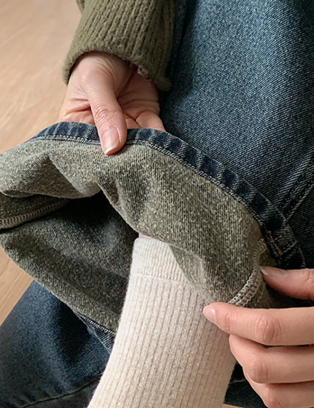 히피오 뒷밴딩 起毛 ワイド デニム パンツ 85522