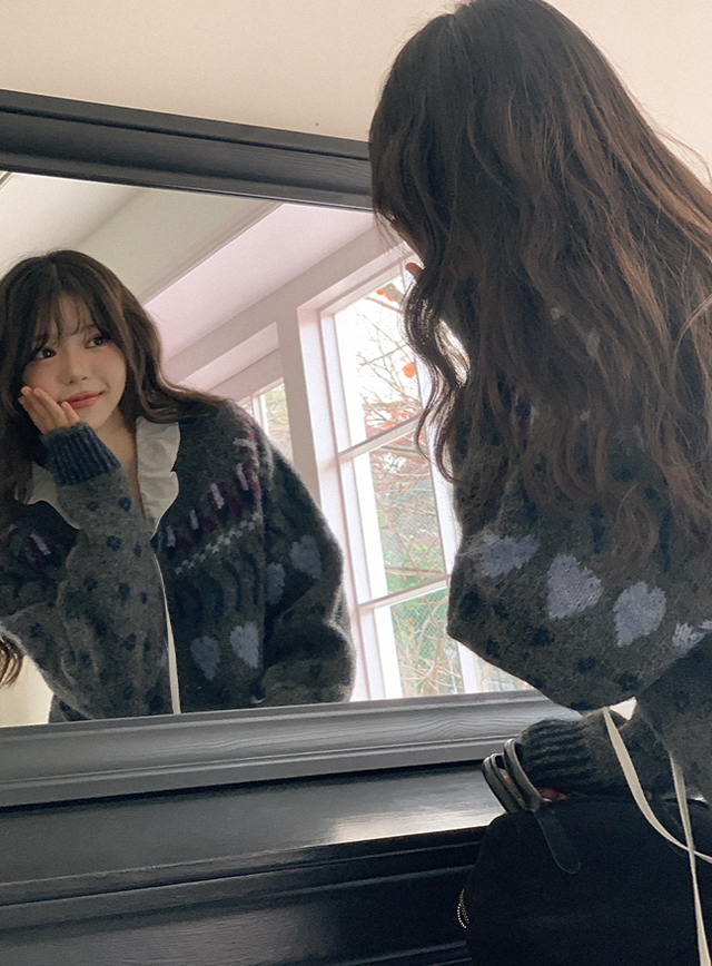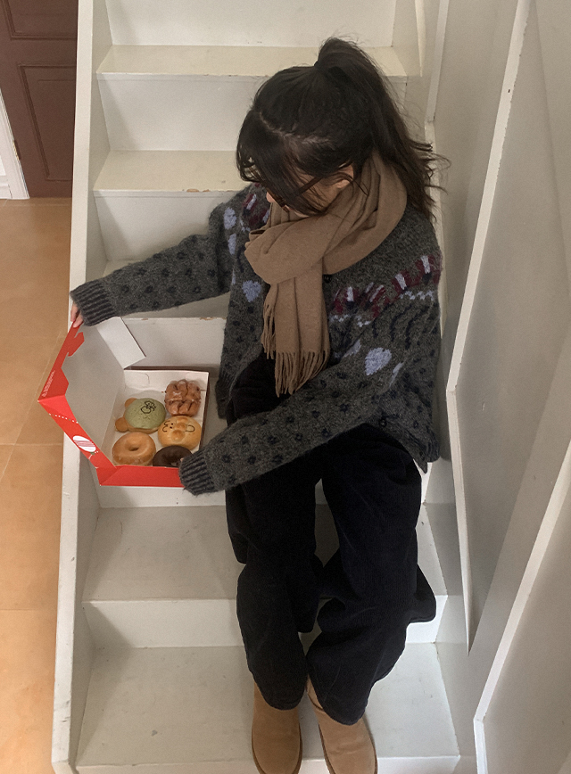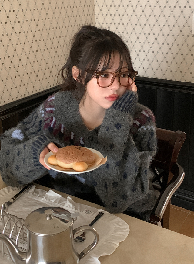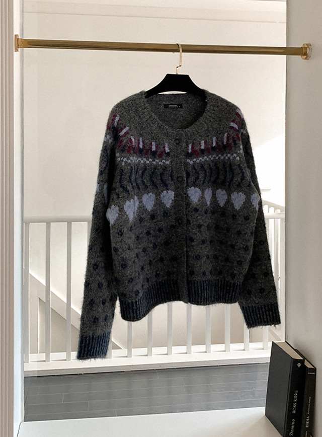 하루비 자카드 ルーズフィット ウール カーディガン 85541