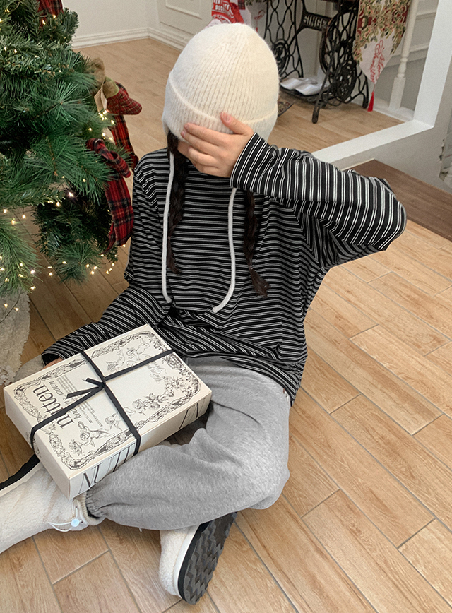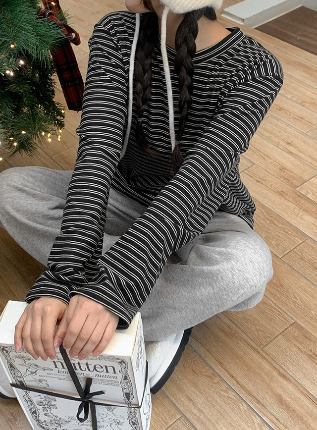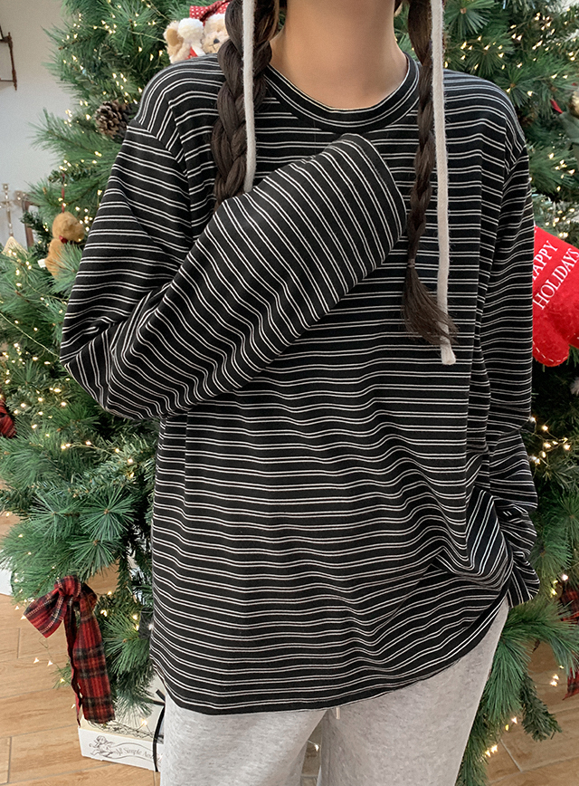 리쉬츠 ストライプ 起毛 ラウンド 長袖 ティーシャツ 85493