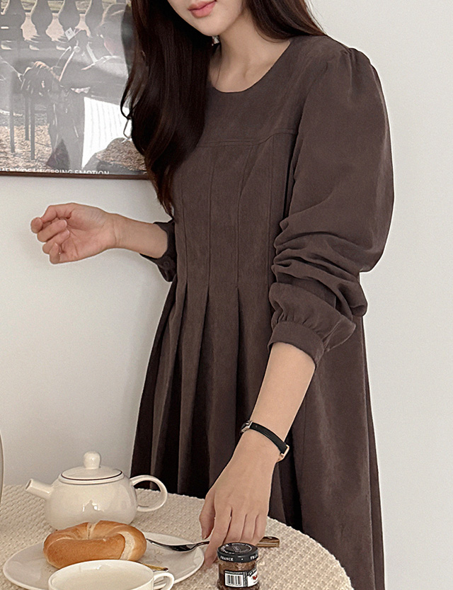 마조리나 ラウンドネック 턱 ピーチ ロング ワンピース 85429