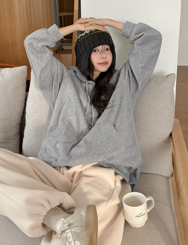 포로잉 ラグラン ルーズフィット フリース フード ティーシャツ 85508
