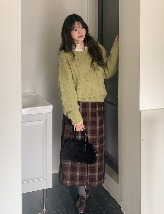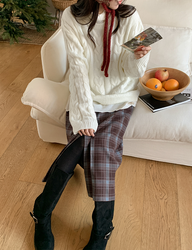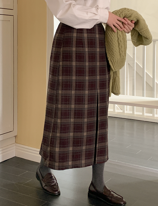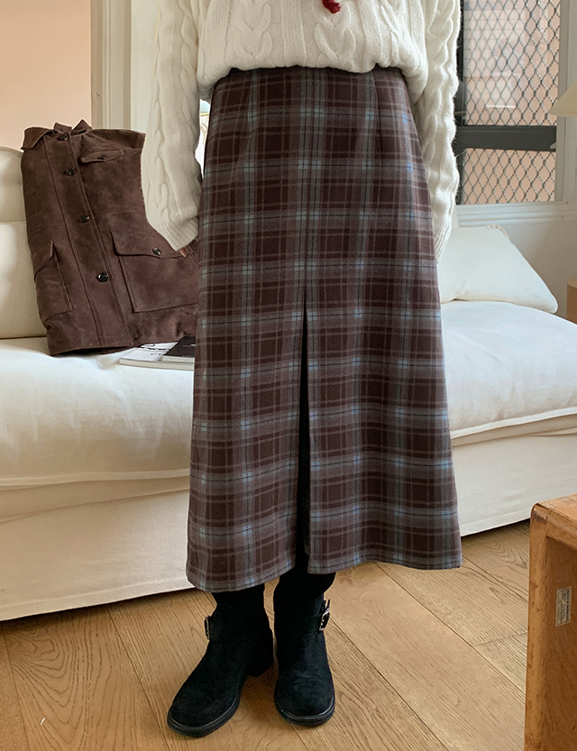 여친무드 뒷밴딩 チェック ロング スカート 85525