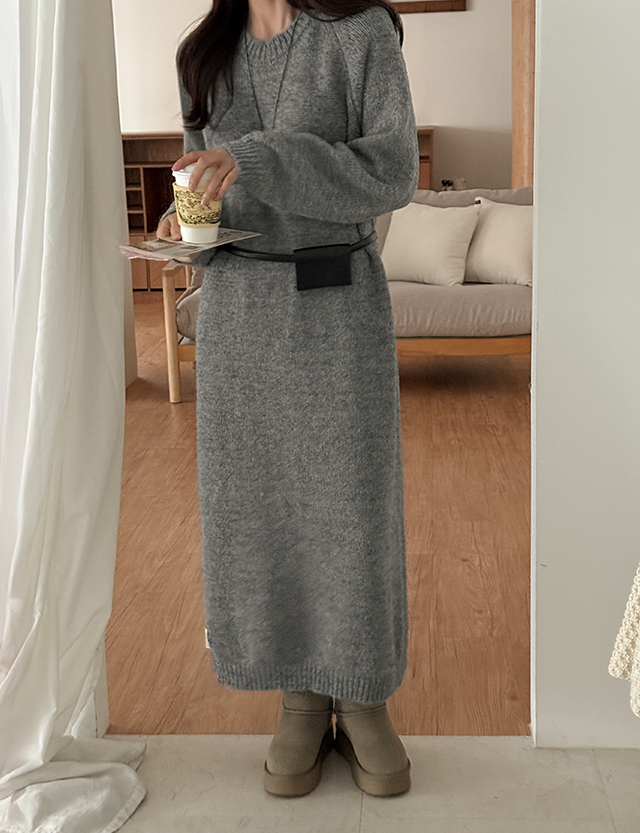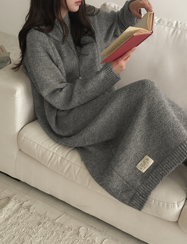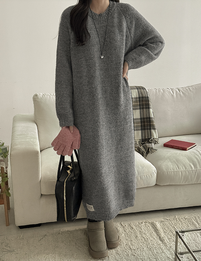 핫프 パステル ラウンド 패치 ニット ロング ワンピース 85584