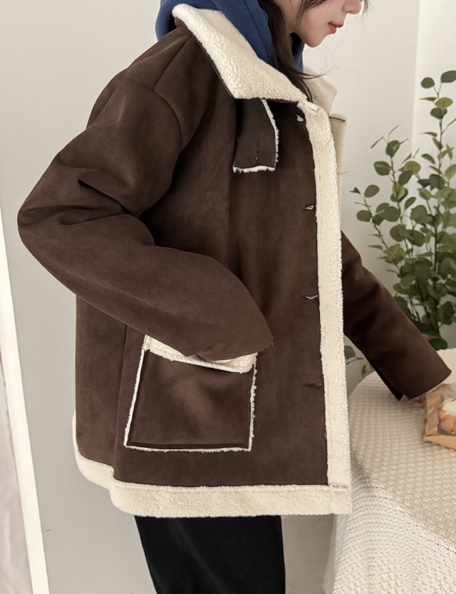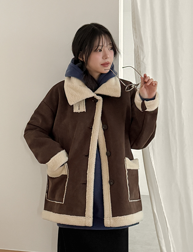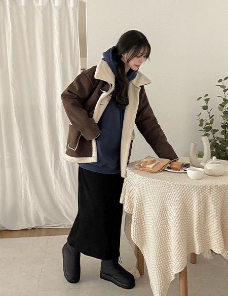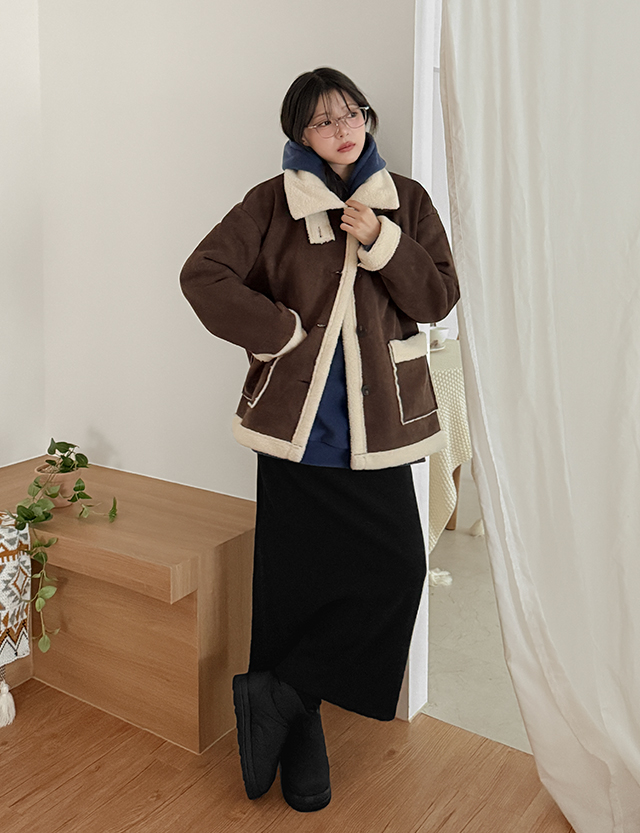티먼 비죠 ハイネック ウール ハーフ ムートンコート 85510