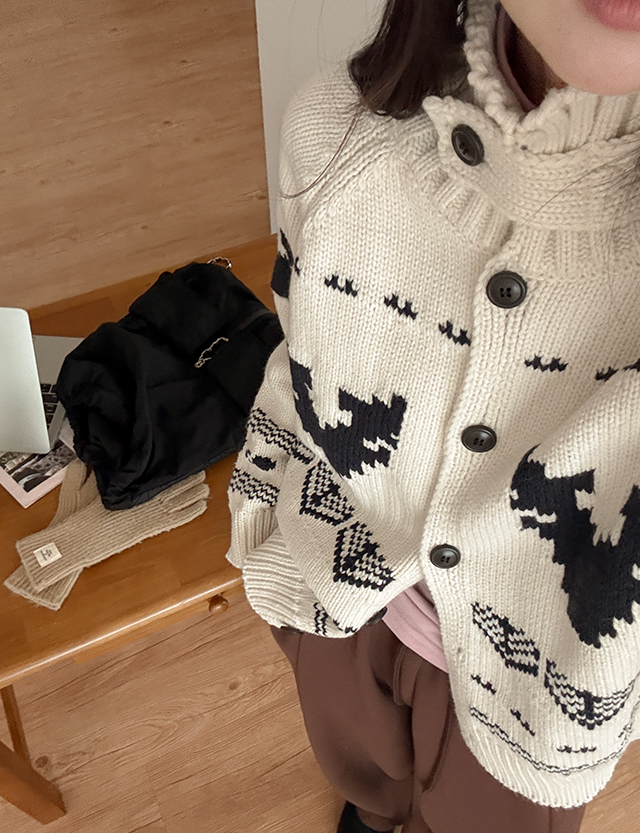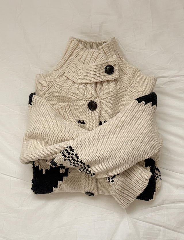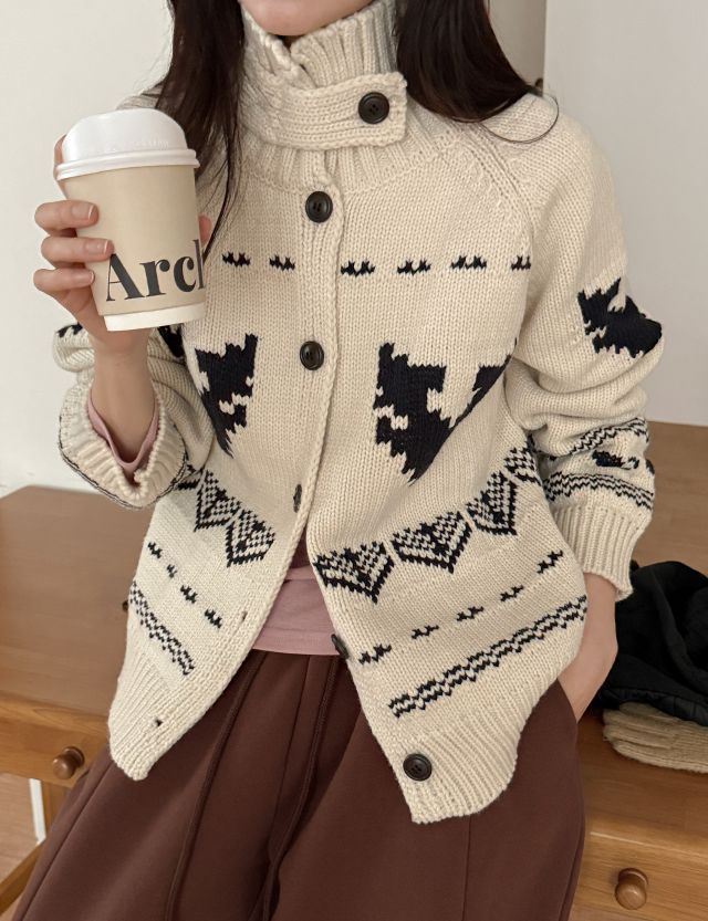 제라 ノルディック パタン ハイネック ウール ニット カーディガン 85604