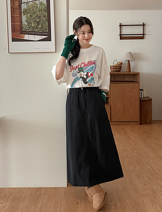 한겨울에도 暖かい ゴム バディング ロング スカート 85623