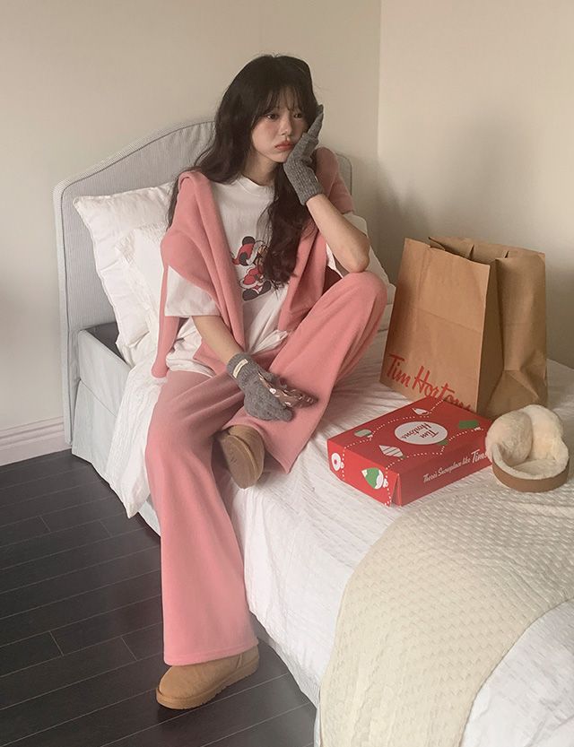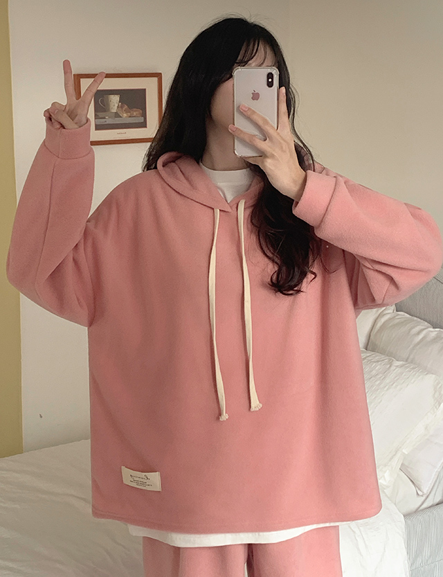 가볍고따뜻해 ルーズフィット フリース フード パンツ セットアップ 85545