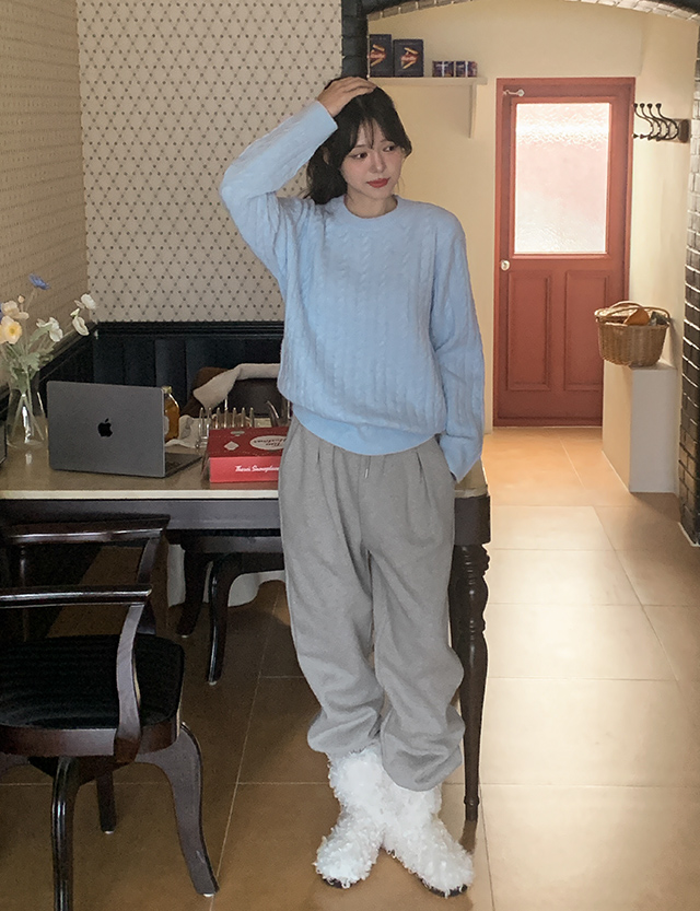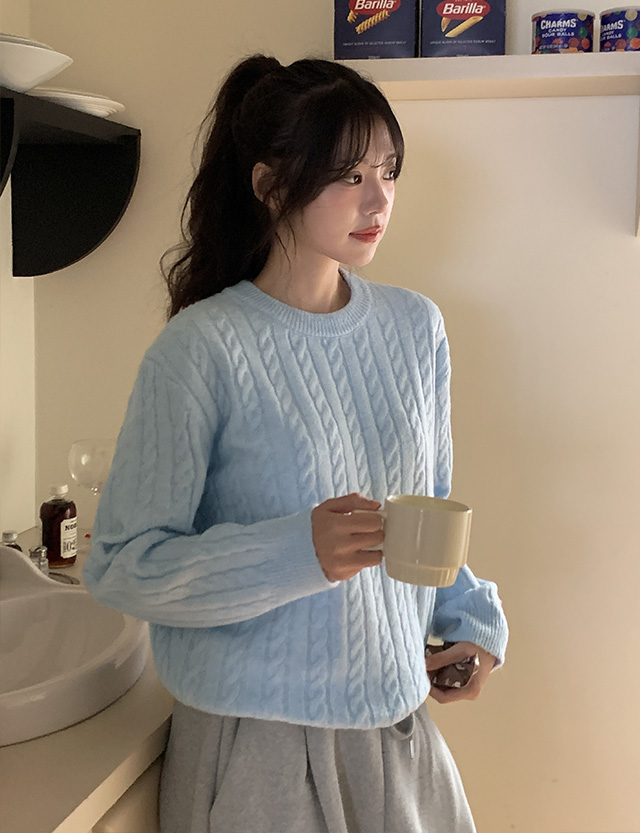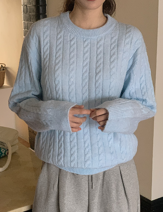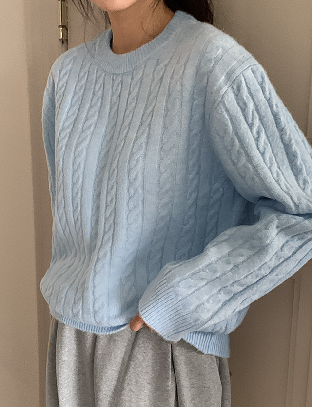 [엠디픽] 虹色 케이블 ウール ラウンドネック ニット 85567