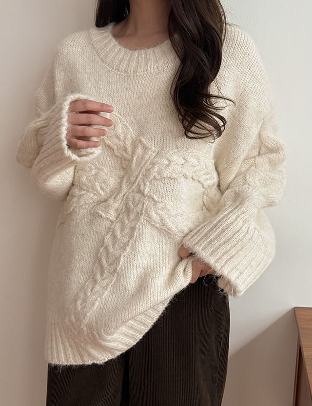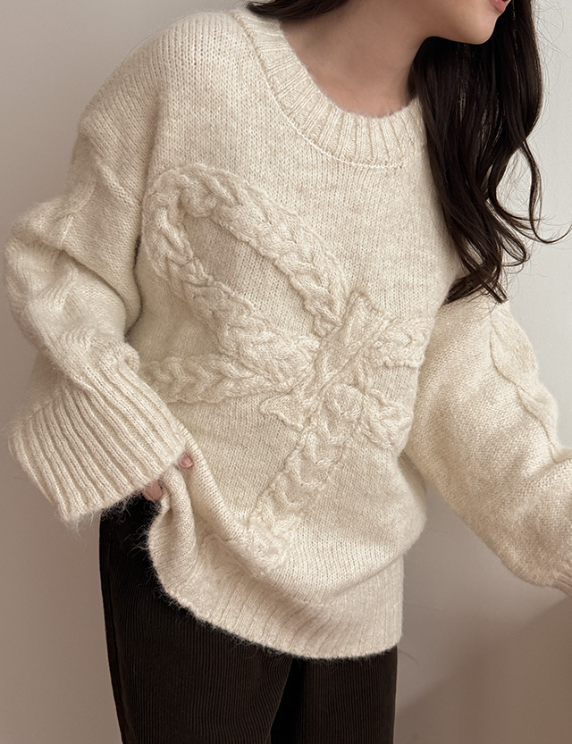 러빙리본 ラウンド ルーズフィット ウール ニット 85620