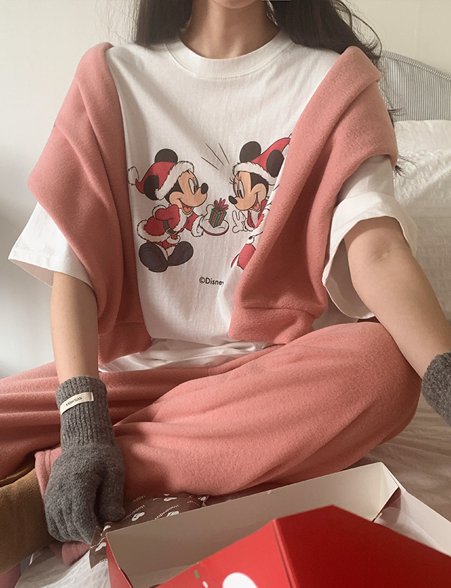 [디즈니정품] 홀리데이 미키 起毛 半袖 ティーシャツ 85553