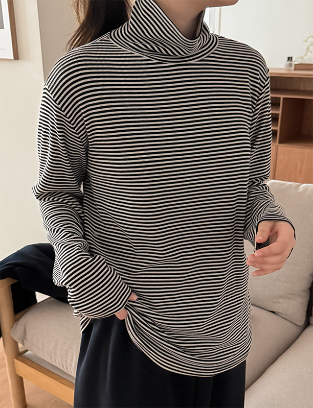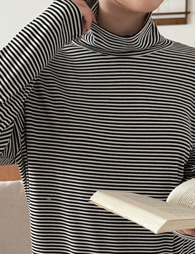 꼬모 ストライプ タートルネック ティーシャツ 85633
