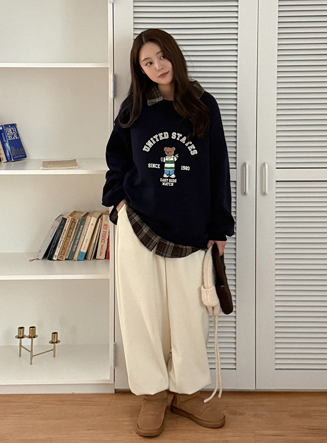 맨틀러 ゴム リブ編み 起毛 조거 パンツ 85677