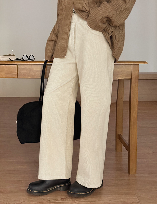 베린트 ゴム 코듀로이 起毛 ワイド ストレート パンツ 85579