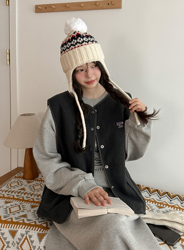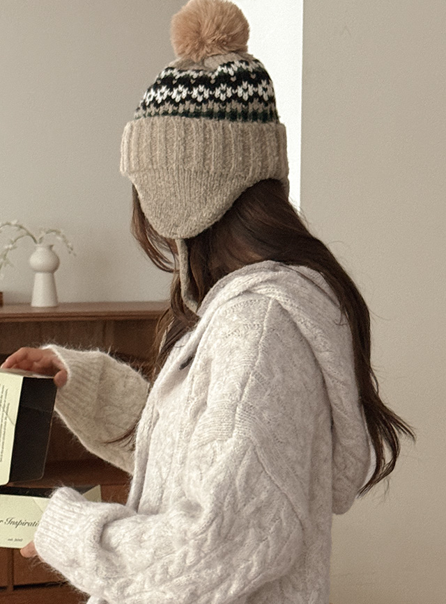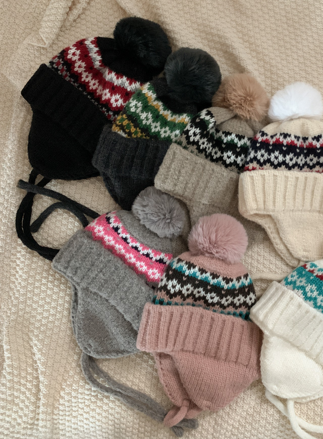 방ウール퍼 귀도리 雪花 ウール ニット 비니 85725
