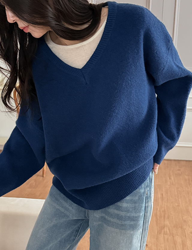 세이 カラー Vネック ルーズフィット ニット 85706