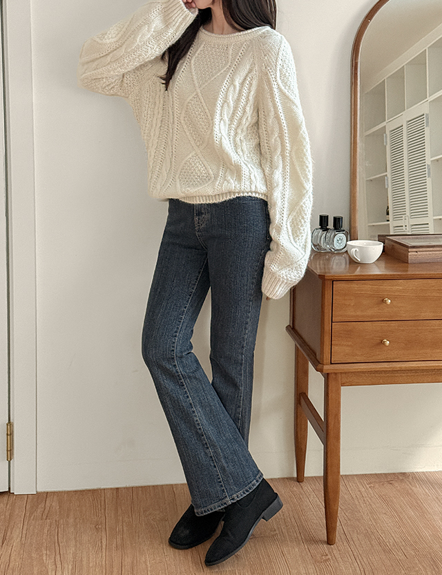 옴델 デイリー 起毛 ブーツカット デニム パンツ 85571
