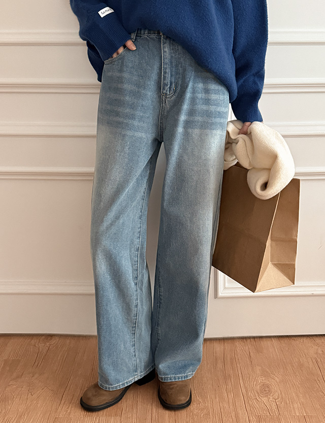 모리 ゴム ウォッシュ ワイド デニムパンツ 85707