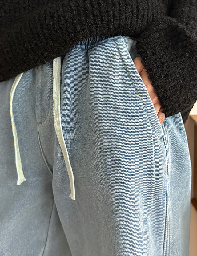 라비 속기모 웜 ゴム 세미와이드 デニムパンツ 85597