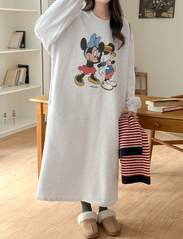 [디즈니정품] 류셀 윈터 プリンティング 起毛 포켓 ロング ワンピース 85773