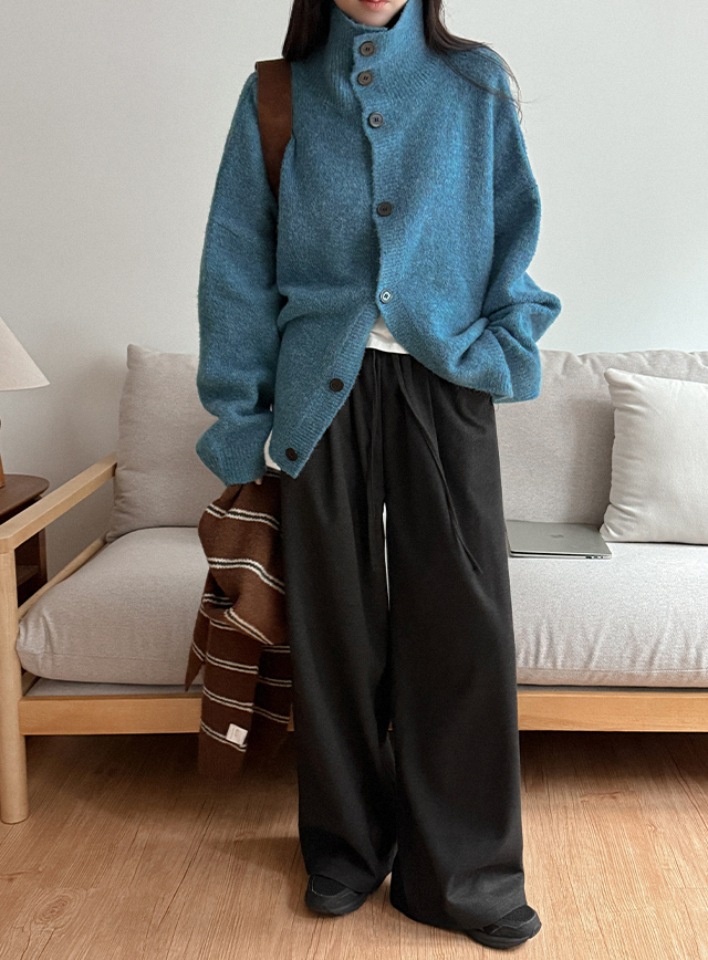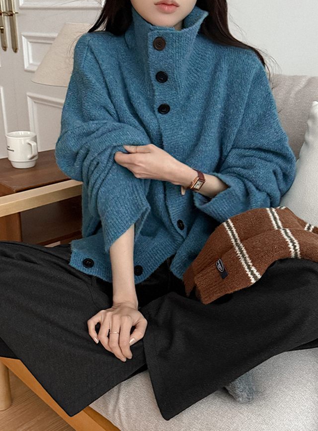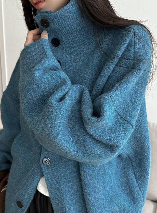 다코 タートルネック ハイネック 버튼 ウール ニット カーディガン 85711