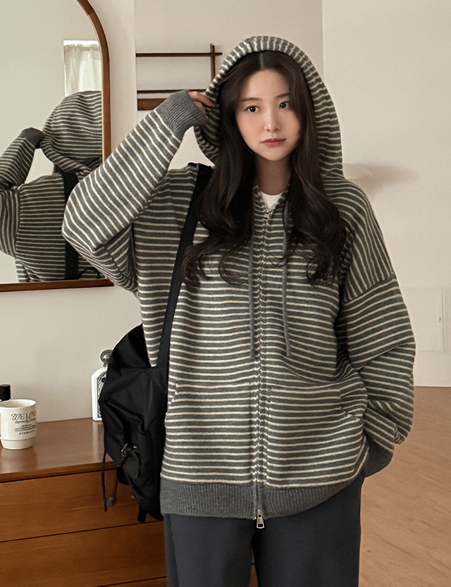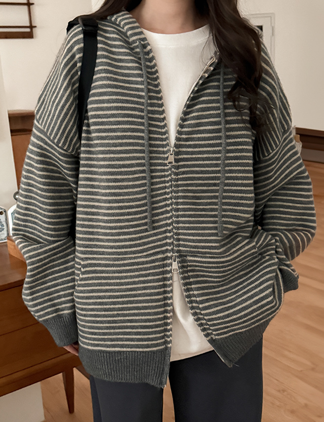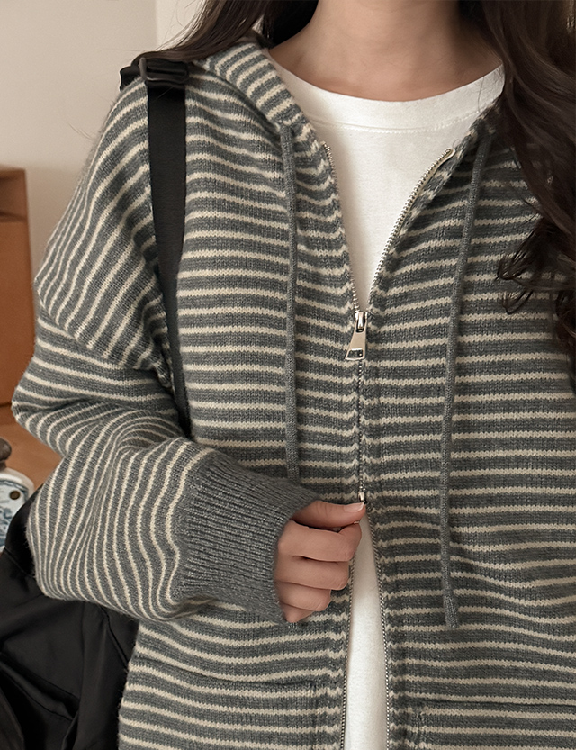 루이빈 ストライプ ニット フード  ジップアップ 85691
