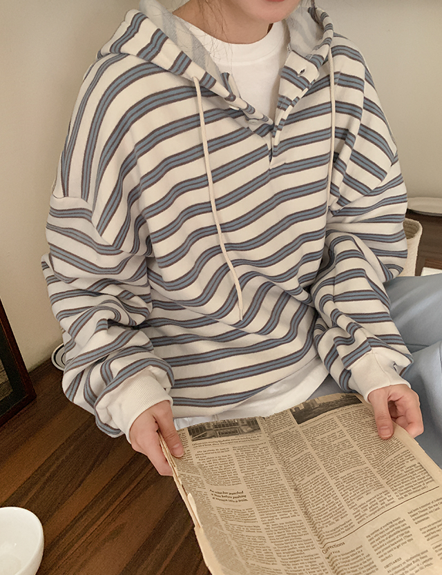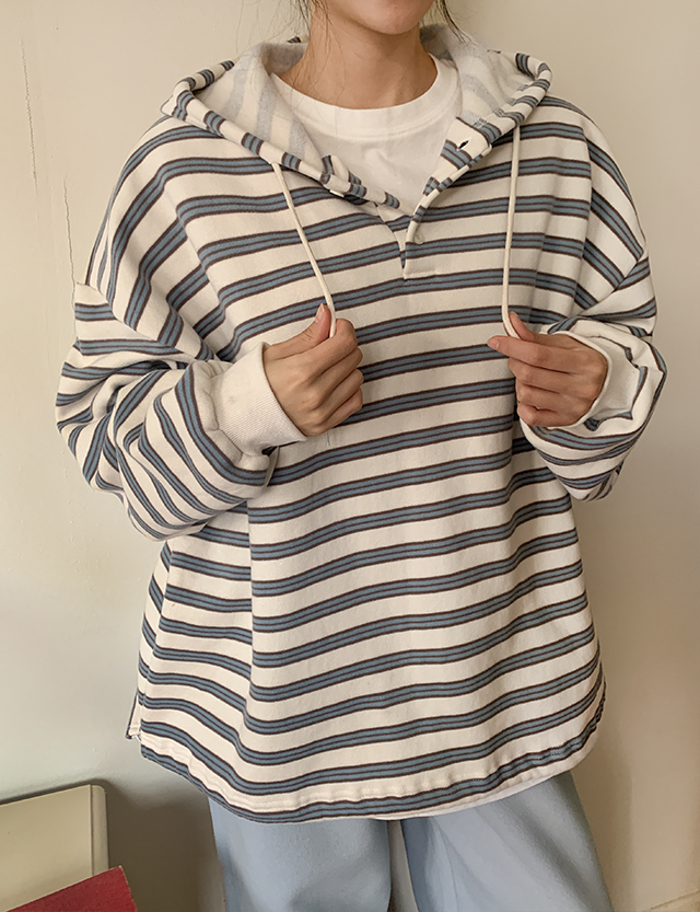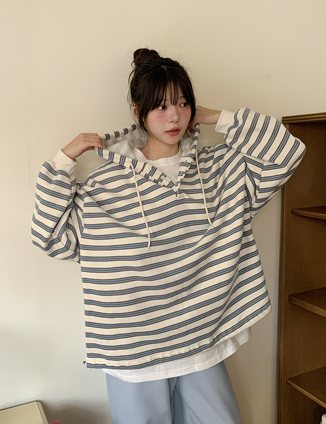 치로 配色 ストライプ 속기모 フード ティーシャツ 85743