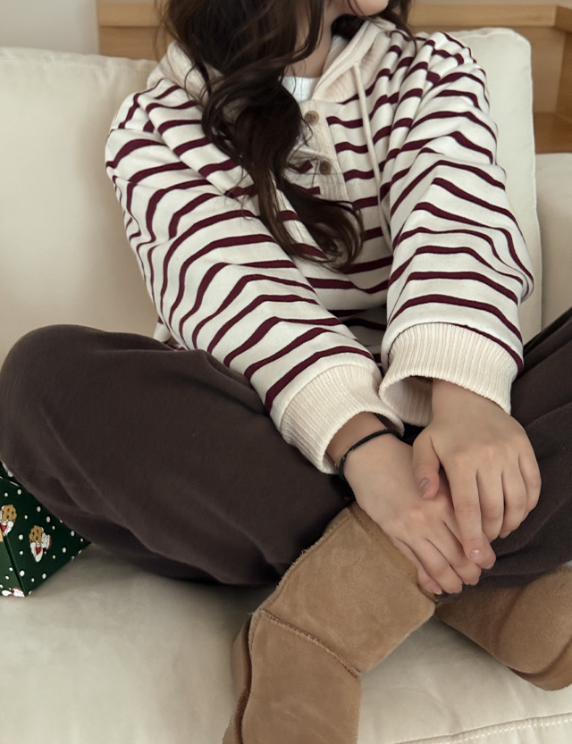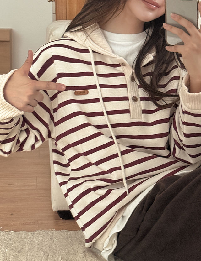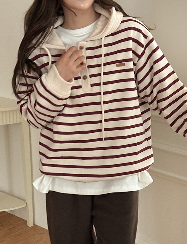 프리큐 起毛 ストライプ フード ティーシャツ 85788