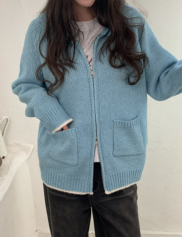 세이르 포켓 2way ウール ニット ジップアップ 85856