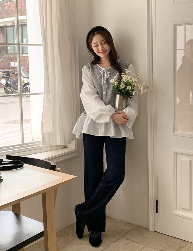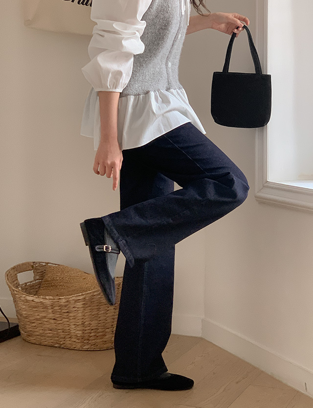 푸이드 히든밴딩 スパン デニム 起毛 パンツ 85846