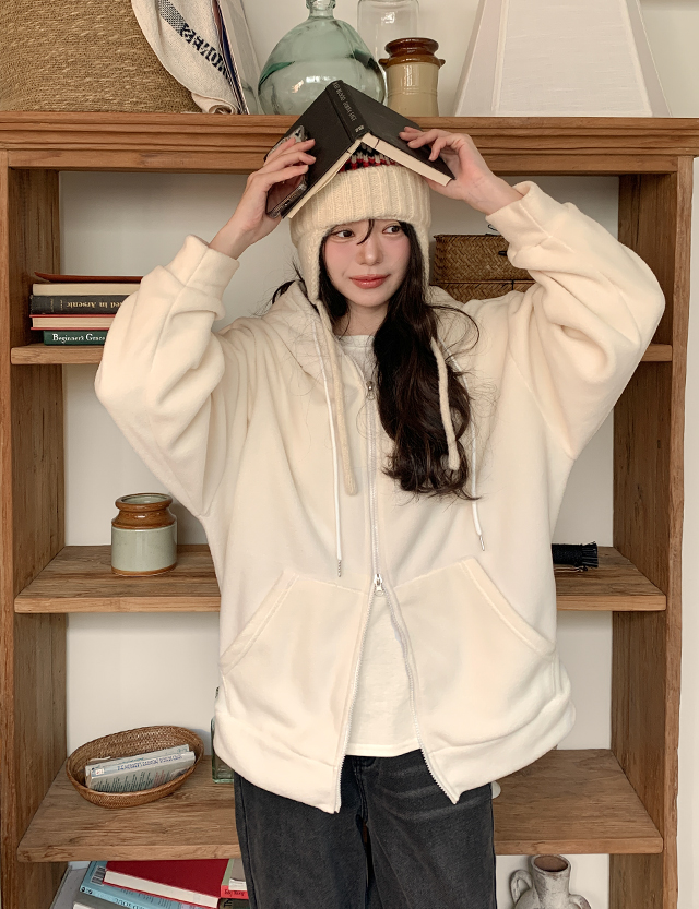 포렛 フリース 刺繍 フード 2way ジップアップ 85860
