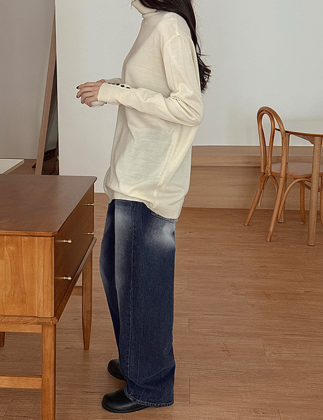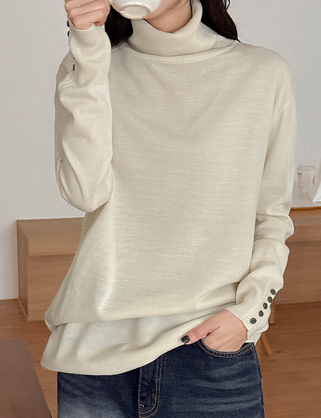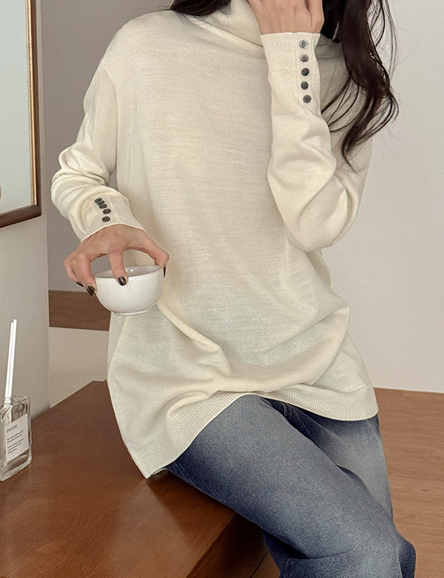맷디 ベーシック 소매버튼 ロング タートルネック ニット 85906