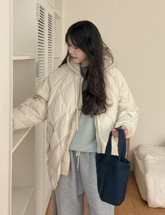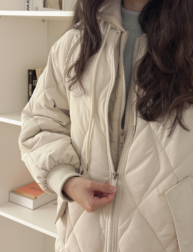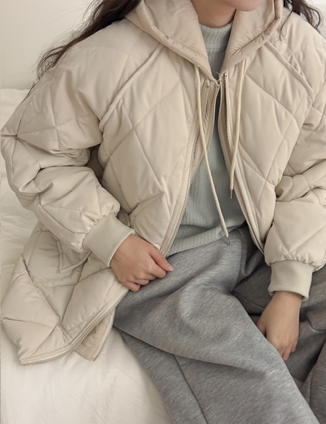 루브레 ダイヤ キルティング フード バディング ジャンパ (5オンス) 85810