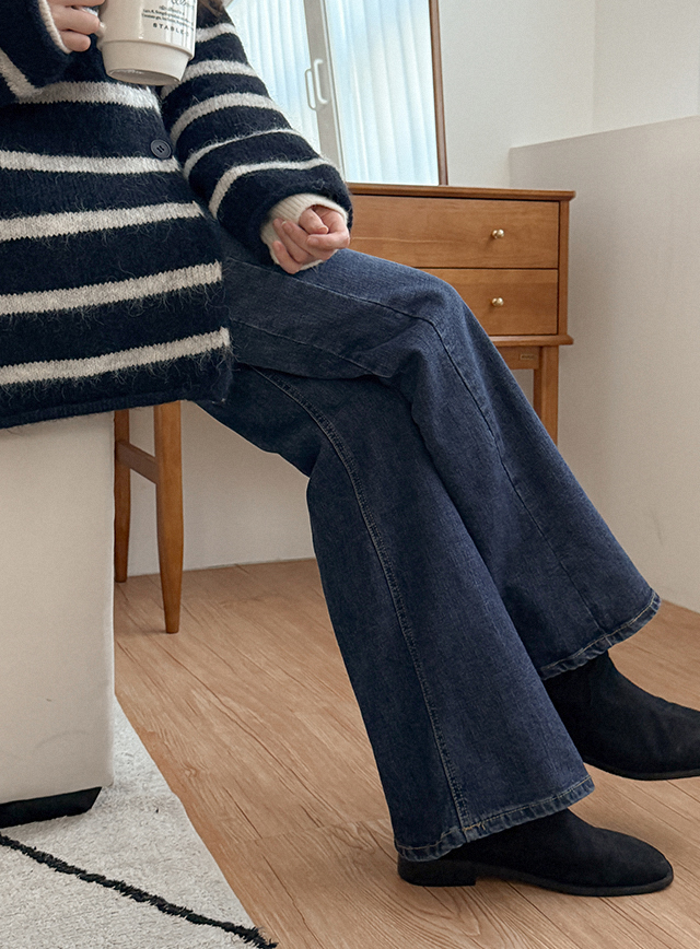 룩뎃 속밴딩 起毛 スパン 세미부츠컷 デニム パンツ 85932