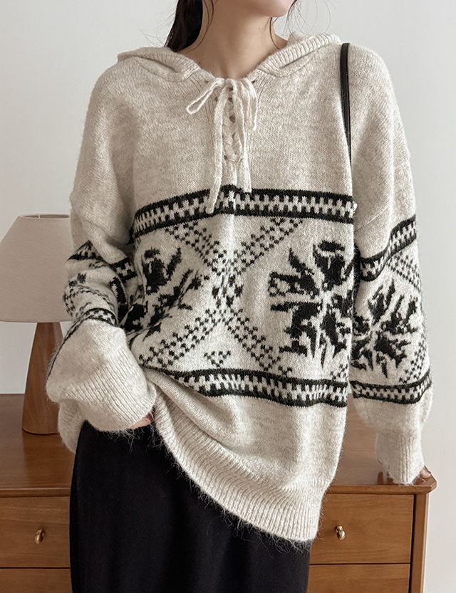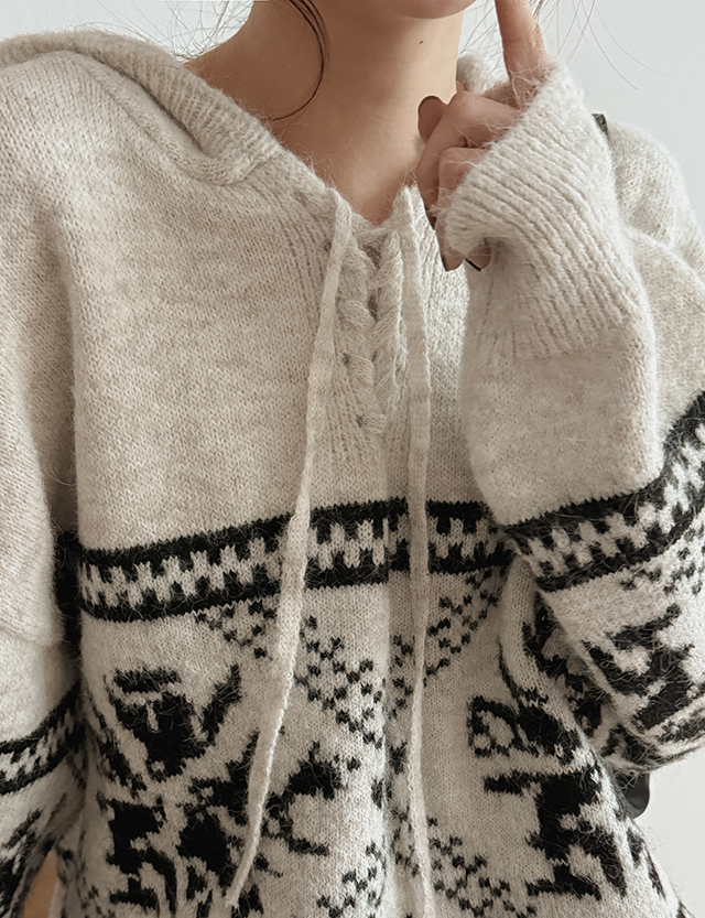 더엘 ノルディック フード ストリング ウール ニット 85891