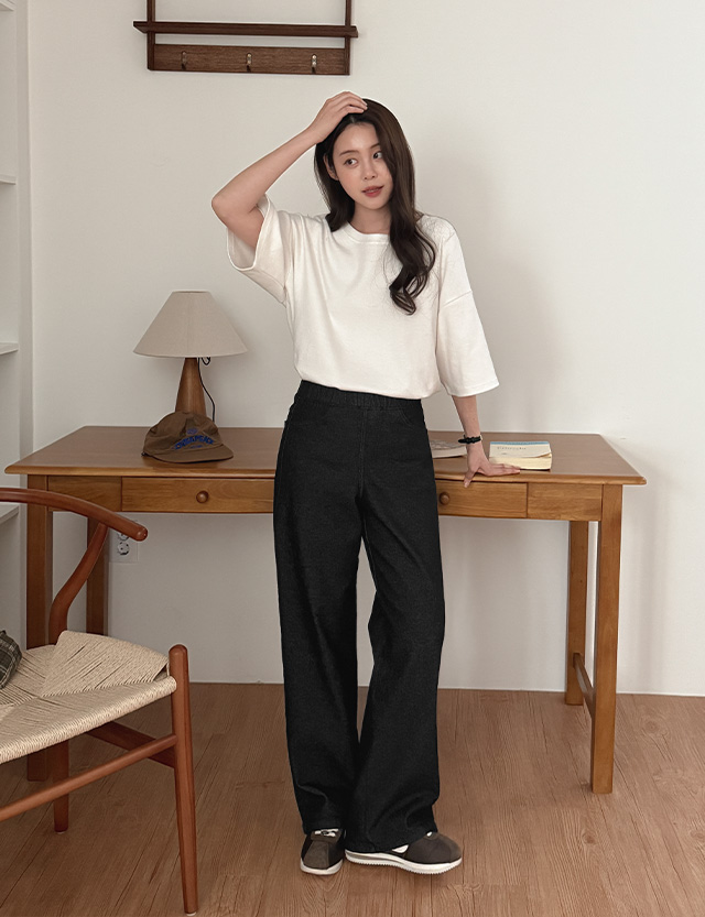 위시프 ゴム スパン 起毛 ワイド デニム パンツ 85942