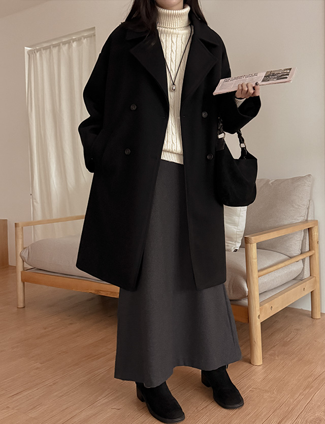 트러스 ダブルボタン キルティング ロング ウール コート (2オンス) 85886