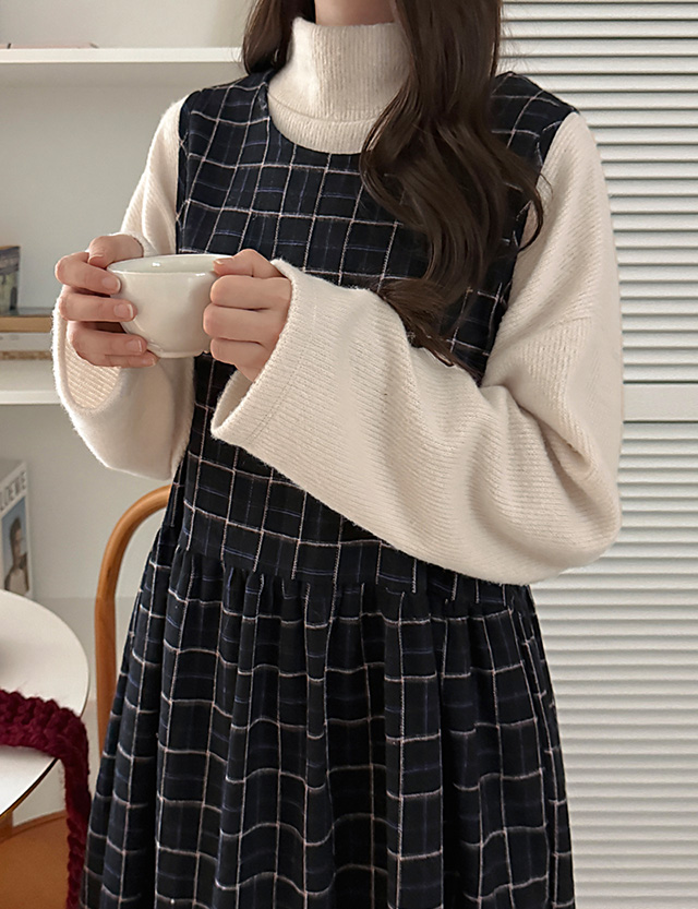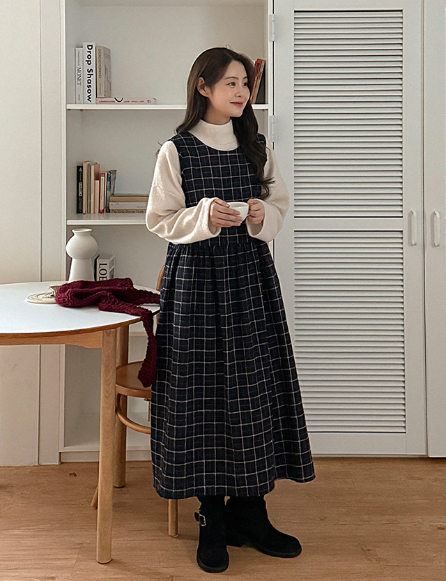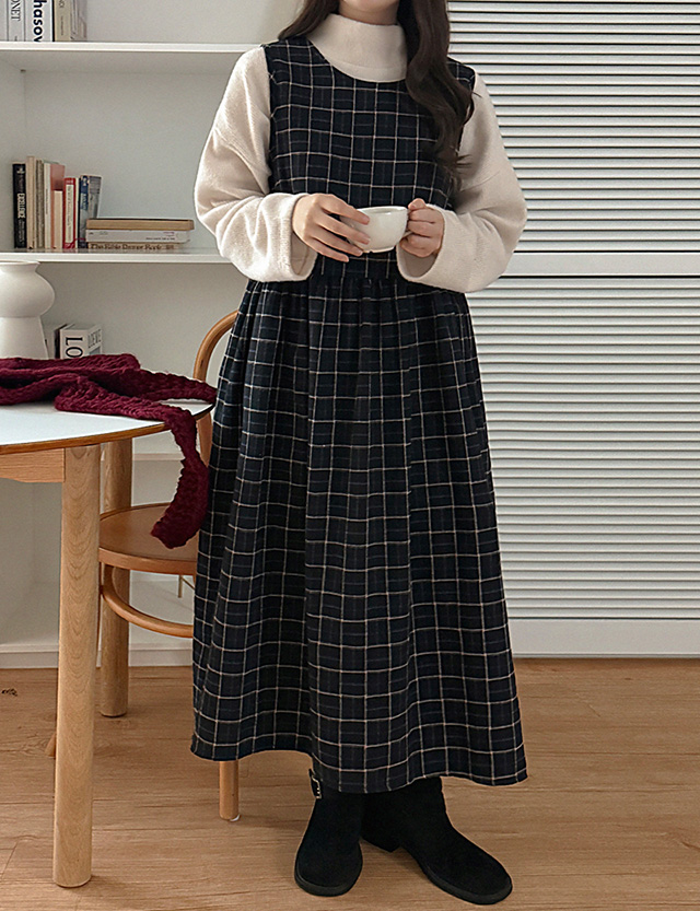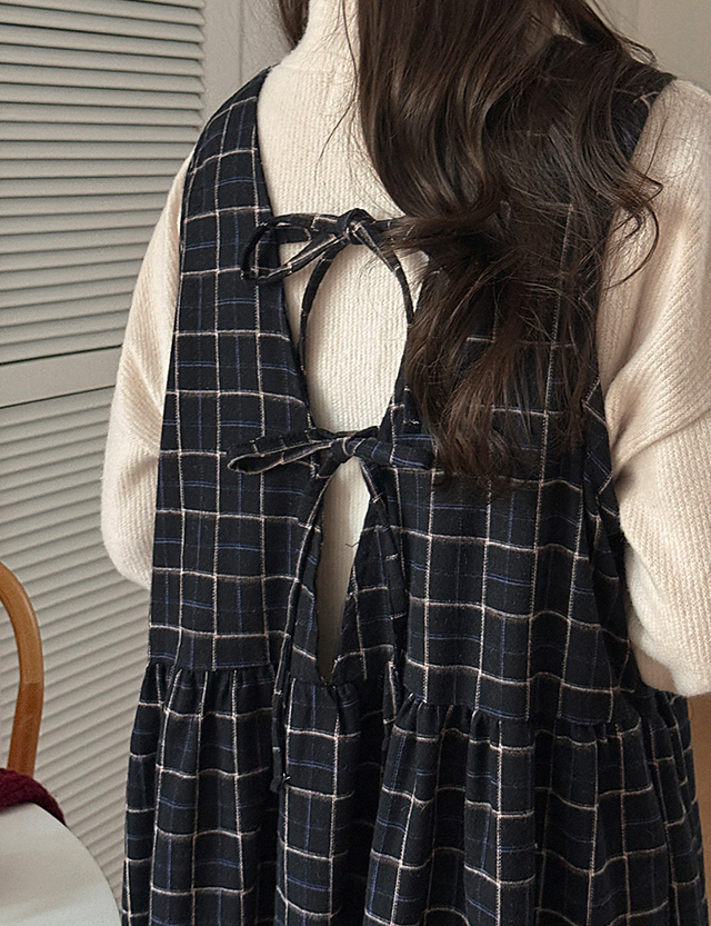 루아블릿 リボン チェック ロング 뷔스티에 ワンピース 85945