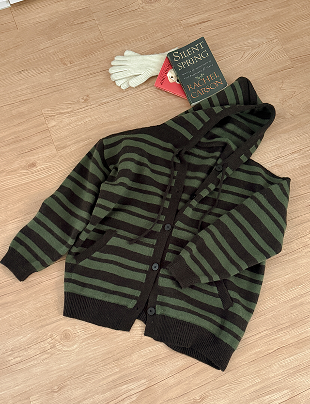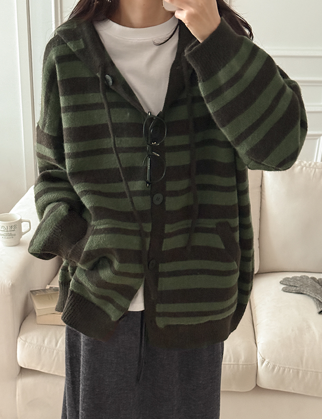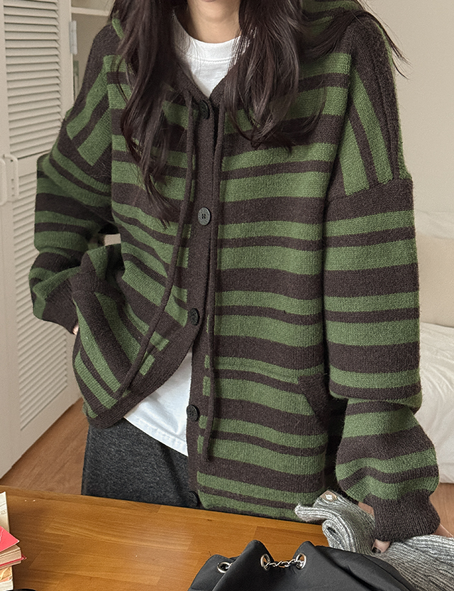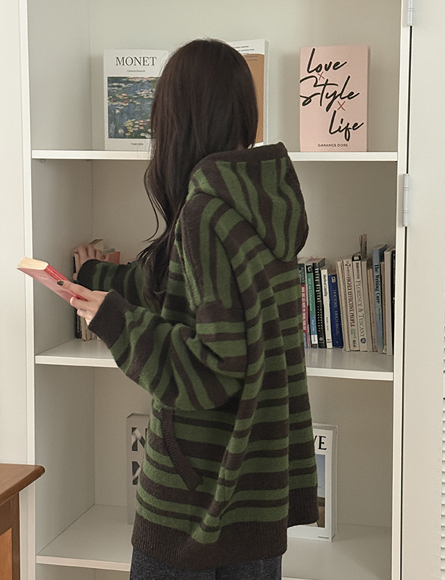 [남여공용]플로우 ウール ストライプ フード カーディガン 85904
