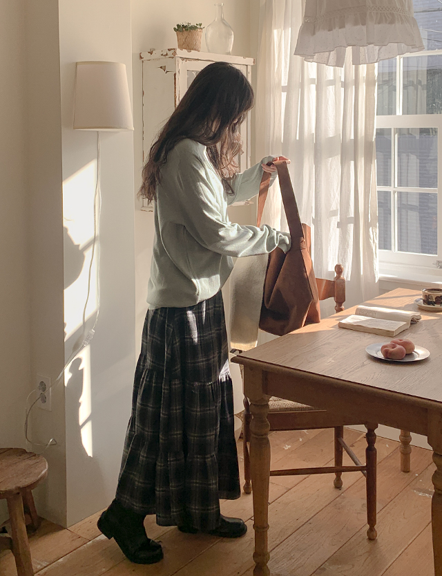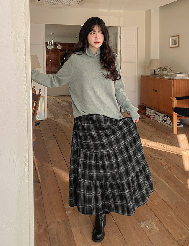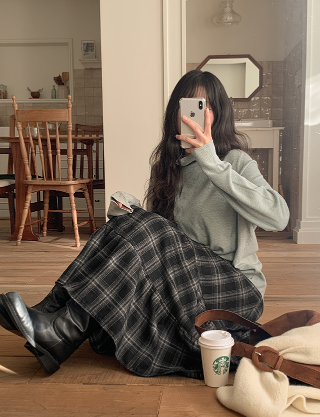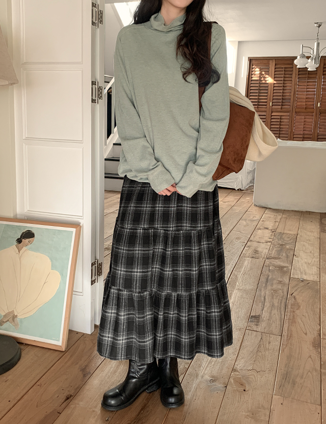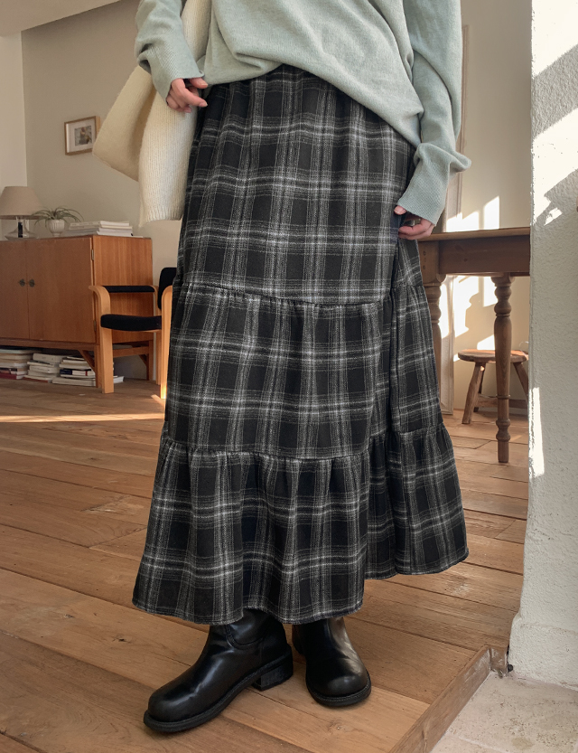 로하 겉기모 チェック カンカン ゴム ロング スカート 85871
